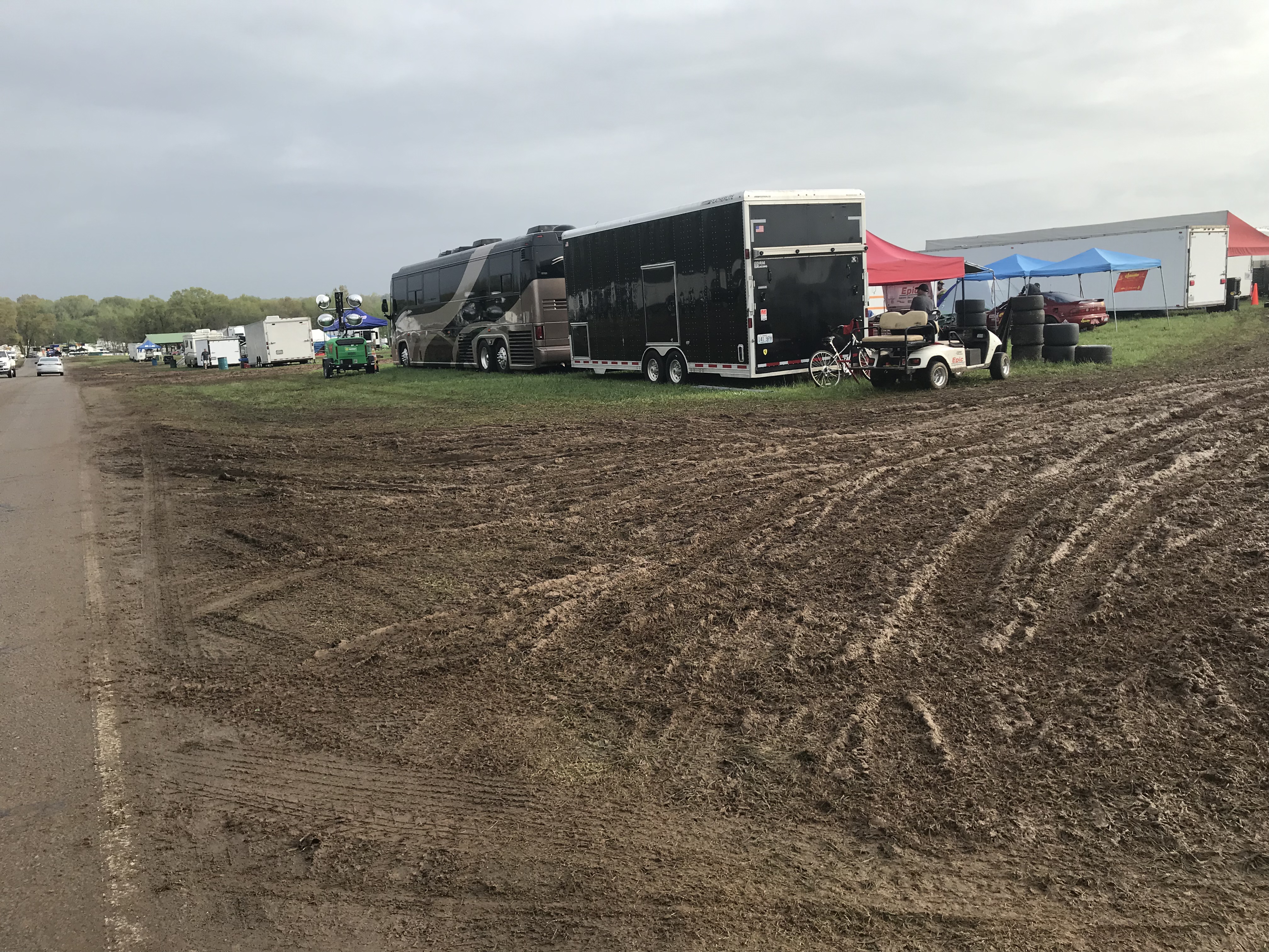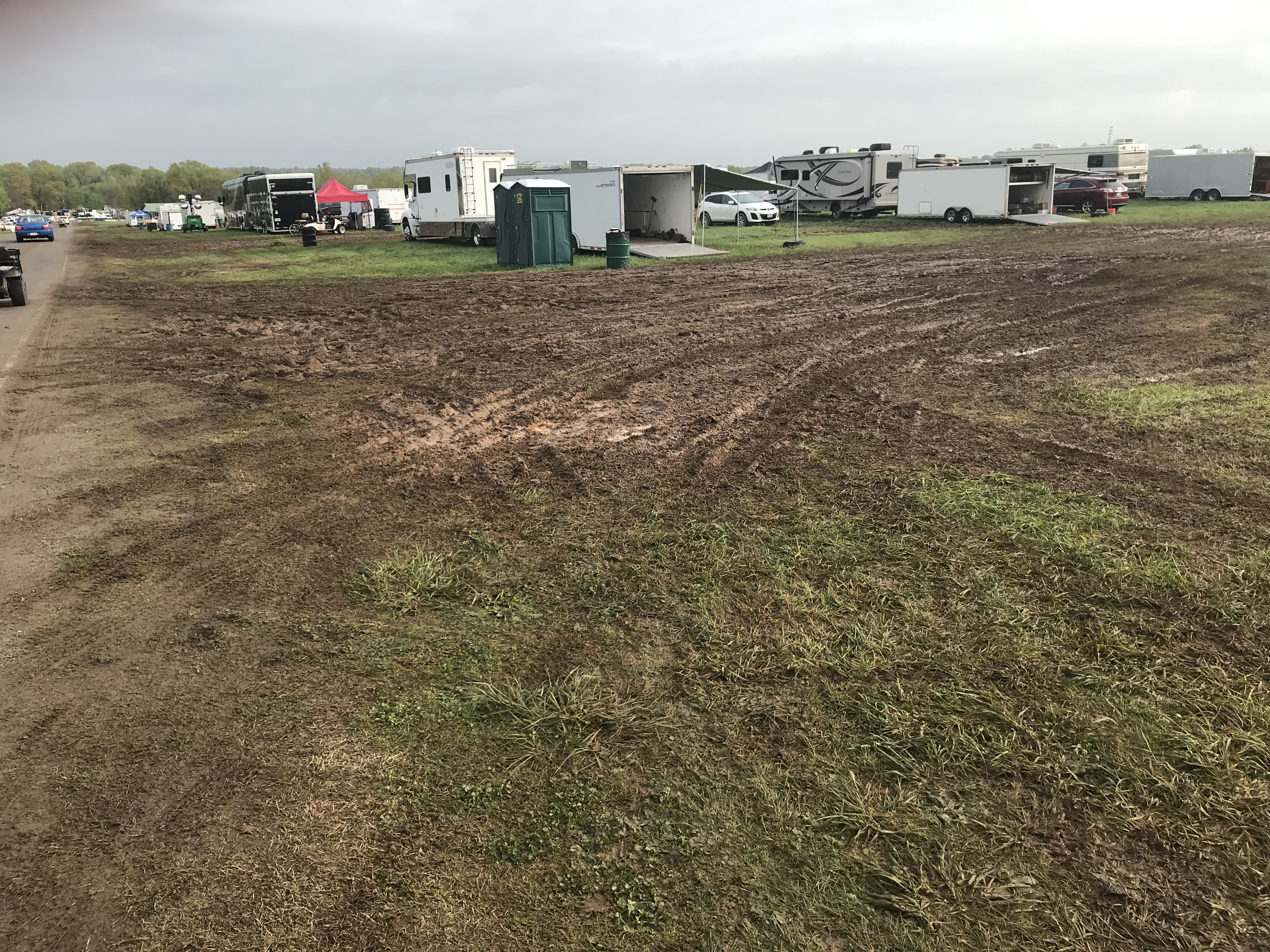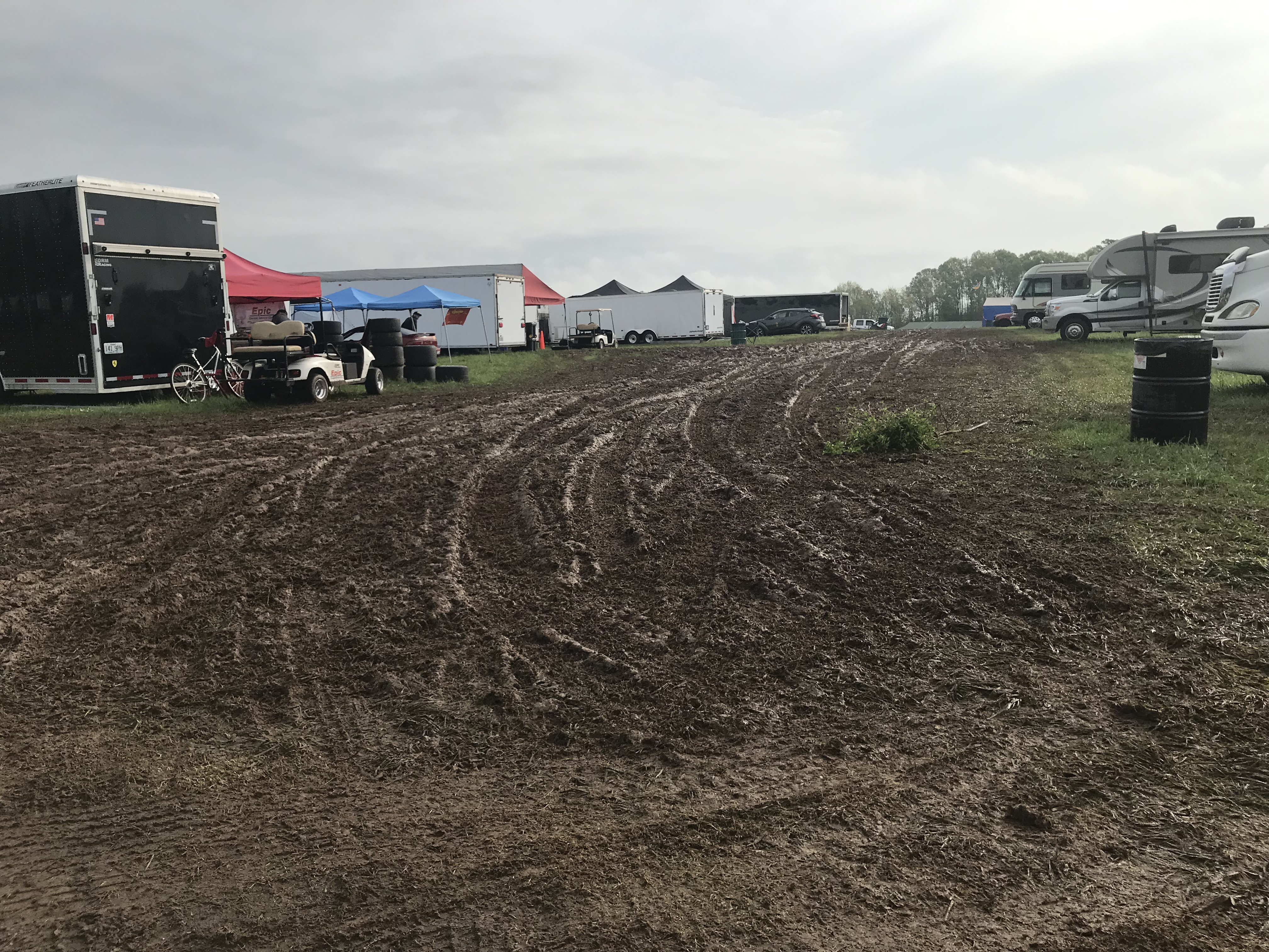 It rained all day Saturday and due to the number of cars, many drivers were forced to paddock in the grass. It began to look like the Woodstock of racing. Cars with slicks could not get out of the muddy grass paddock, and had to be pushed. It was quite a mess. I took a few pictures which really don’t even do it justice.